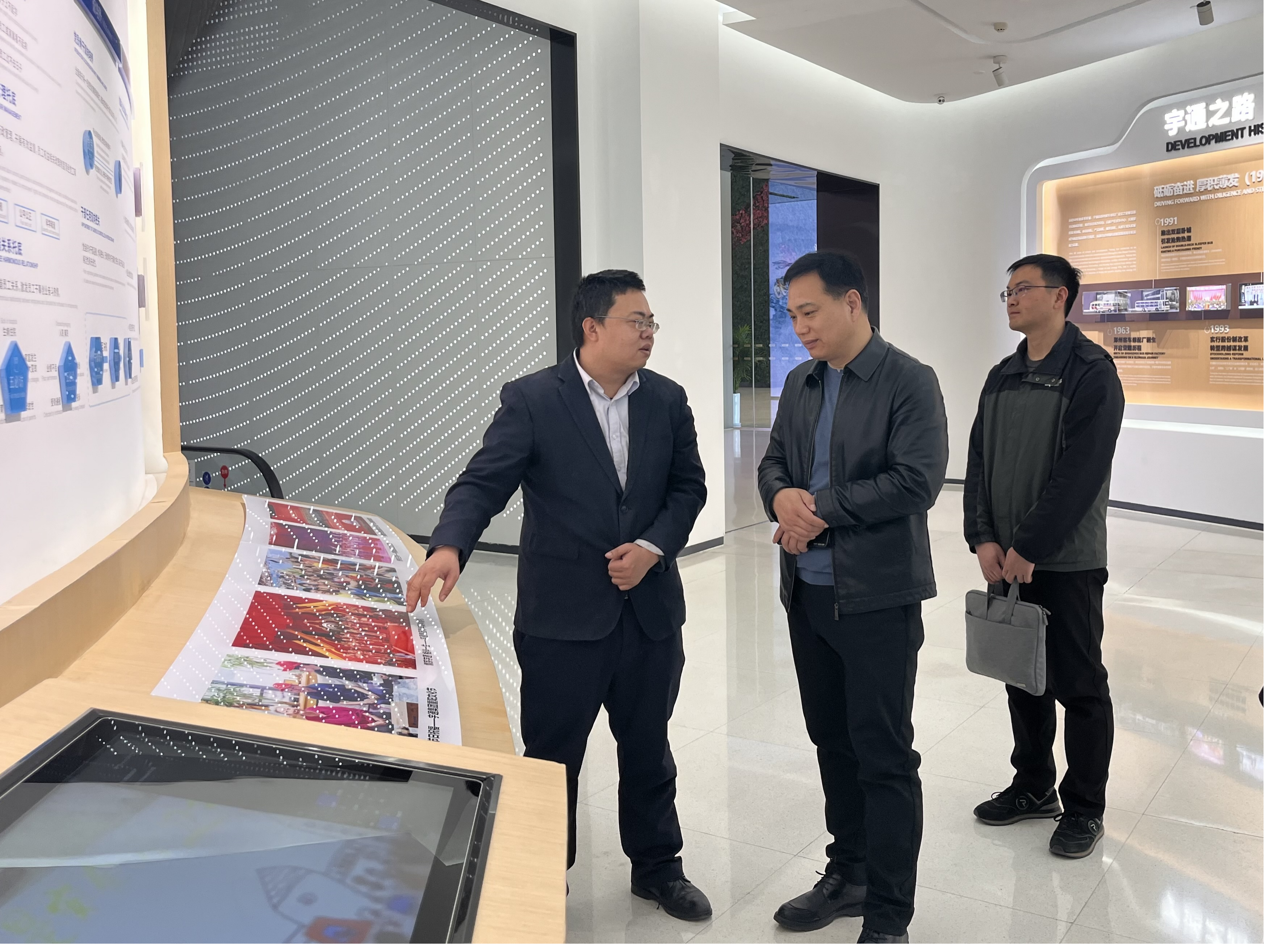 郑州宇通集团对学院领导一行的到访表示热烈欢迎学院观察团在宇通人力资源部经理宁卫广的陪同下,参观了电泳车间、总装车间和宇通博物馆,了解企业的生产流程和技术特点及宇通的发展历程和企业文化。