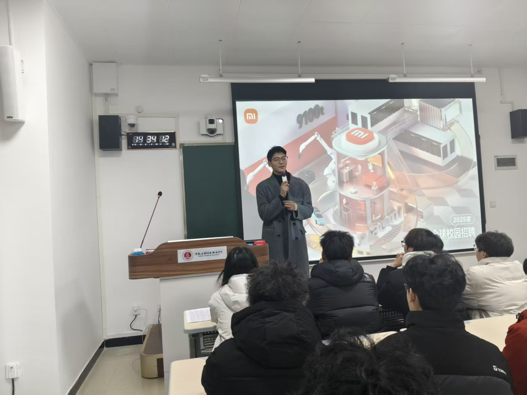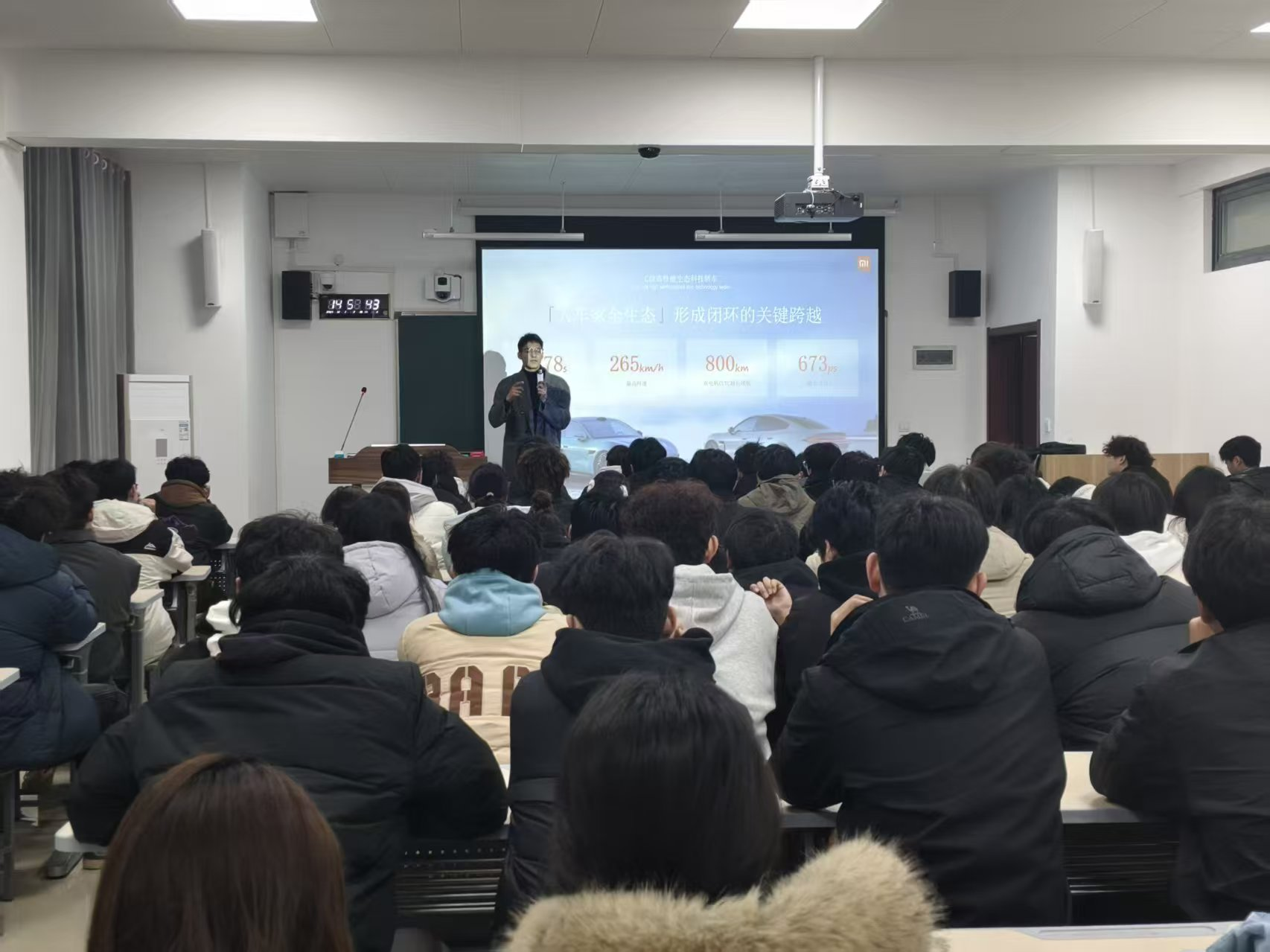 宣讲中,李磊围绕小米汽车的发展历程、核心技术布局、企业文化内核等内容展开详细解读。针对学生普遍关注的人才发展问题,李磊从职业晋升通道、专项培训体系、薪资福利结构、办公生活环境等方面进行全面阐述,强调小米汽车 “以人才为核心” 的发展理念。他表示,“我们始终重视高校人才储备,希望通过冠名班模式,吸引更多优秀学子加入,与企业共同成长,助力汽车产业智能化升级”。生动的宣讲让在场学生对小米汽车及行业发展前景有了更清晰的认知,进一步激发了大家的参与热情。