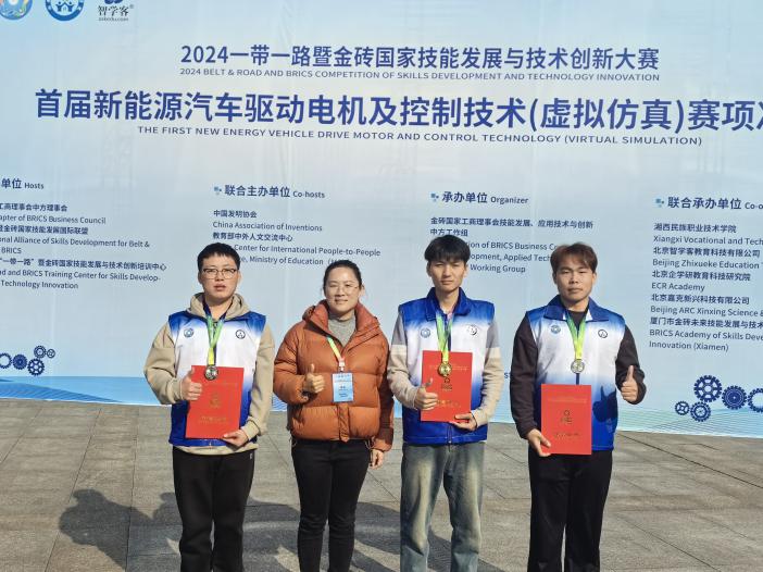 12月1日,2024一带一路暨金砖国家技能发展与技术创新大赛首届新能源汽车驱动电机及控制技术(虚拟仿真)赛项决赛落下帷幕,米乐mile体育官网的师生团队凭借扎实的专业技能和出色的赛场表现,在全国119支参赛队伍中脱颖而出,成功斩获一等奖一项,二等奖两项的优异成绩。