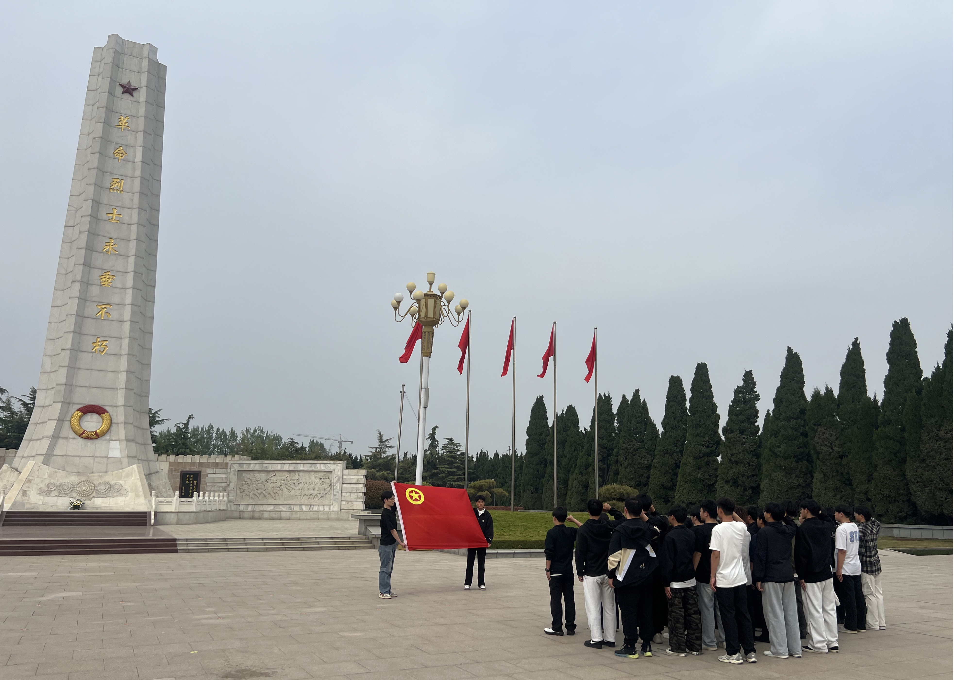在庄严肃穆的氛围中,全体师生整齐列队,向革命先烈们集体默哀一分钟。在这短暂而凝重的静默里,师生们寄托着对先烈的深切哀思与崇高敬意。