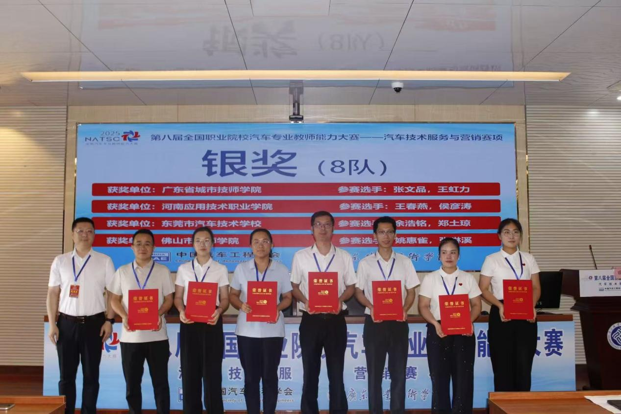 6月21日,第八届全国职业院校汽车专业教师能力大赛汽车技术服务与营销赛项在广东职业技术学院圆满落幕。本次大赛汇聚了全国16个省份的40支精英参赛队同台竞技,在激烈角逐中,由米乐mile体育官网副院长仵征亲自带队,王春燕、侯彦涛两位教师组成的参赛团队,凭借扎实的专业功底与出色的临场发挥,最终勇夺高职组银奖,为学院赢得了荣誉。