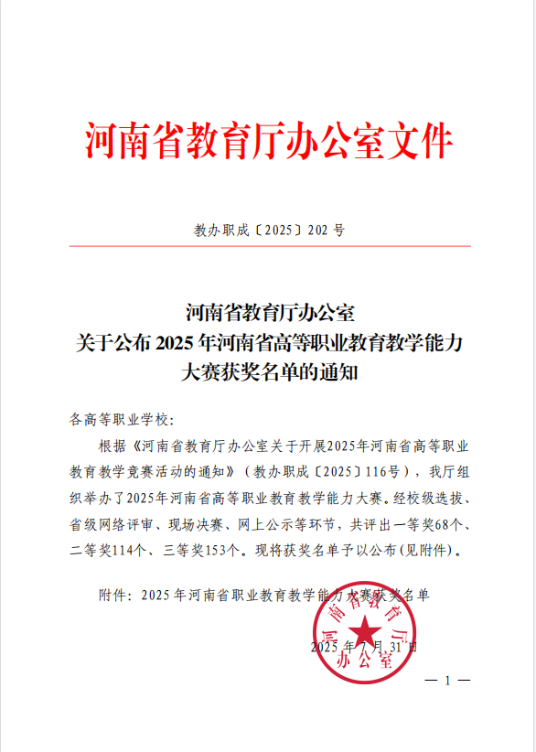 近日,2025年河南省高等职业教育教学能力大赛圆满落幕。米乐mile体育官网米乐mile体育官网派出的教师团队——王亚楠、仵征、师晓、董芳甫四位老师,首次参赛便以出色的表现荣获省一等奖,实现了汽车学院在该赛事中的历史性突破!