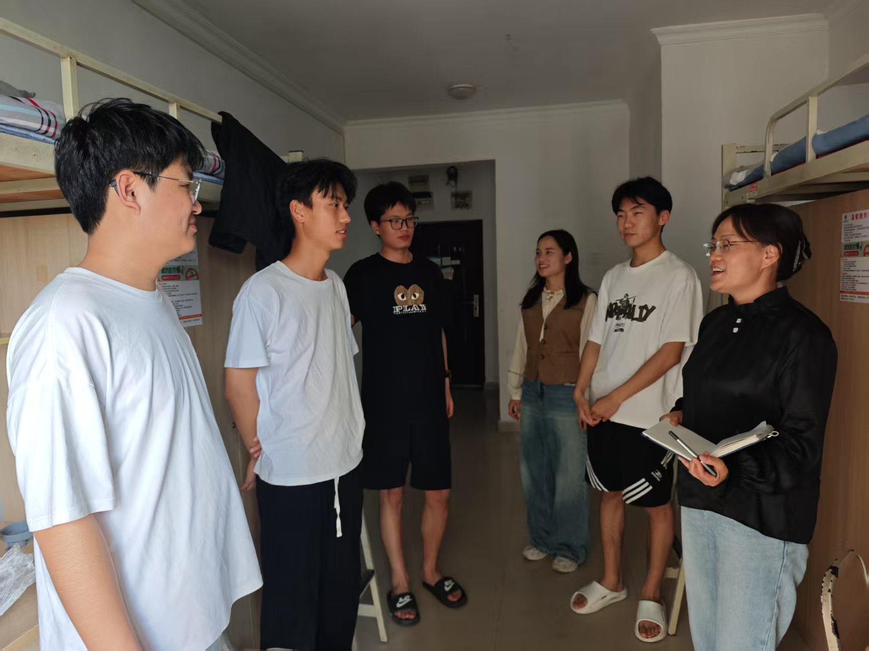5月18日下午,孙丽娜与邢梦怡首先来到员工公寓,仔细查看宿舍居住环境,关切询问学生生活需求。孙丽娜语重心长地叮嘱学生:“从教室坐着、宿舍躺着到站着工作,不仅是工作形式的转变,更需要强大的心理调适能力,学校永远是你们的坚实后盾。”作为心理专员,邢梦怡敏锐捕捉到部分学生初入职场的紧张情绪,用亲切的话语舒缓他们的压力,引导学生分享适应工作生活过程中的感受。